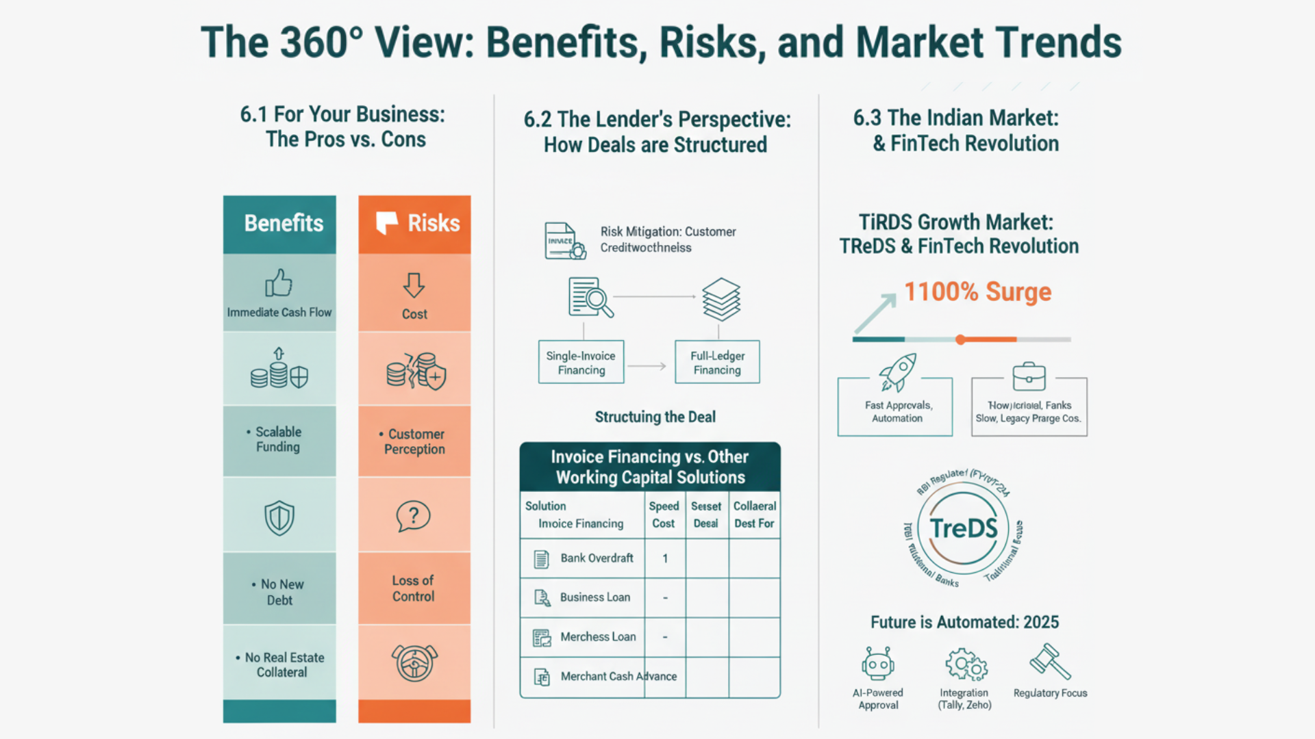 - Bill Discounting: The financier advances cash, but you retain control of the sales ledger and manage collections (confidential). This is the mechanism often used on the TReDS platform.